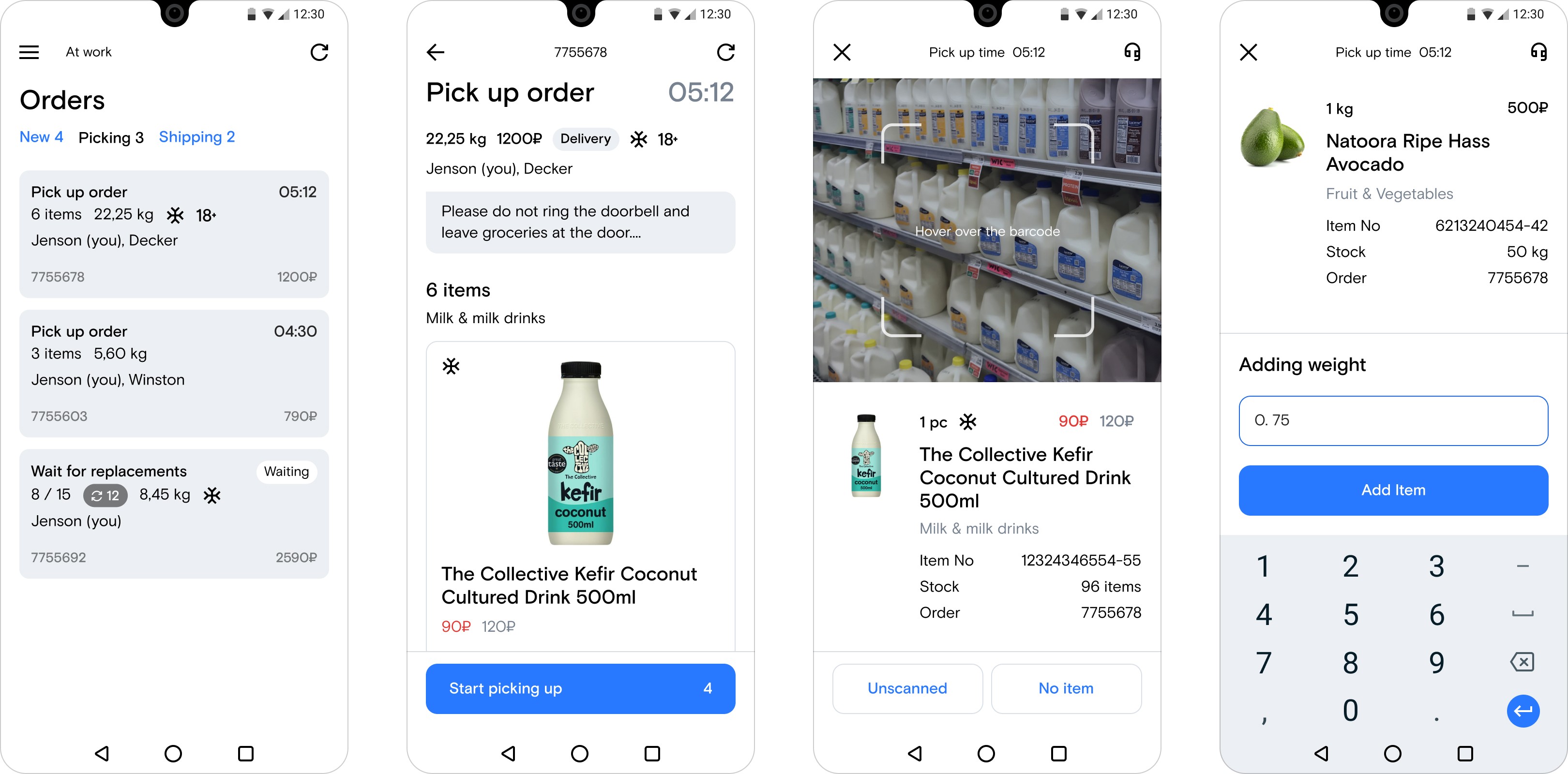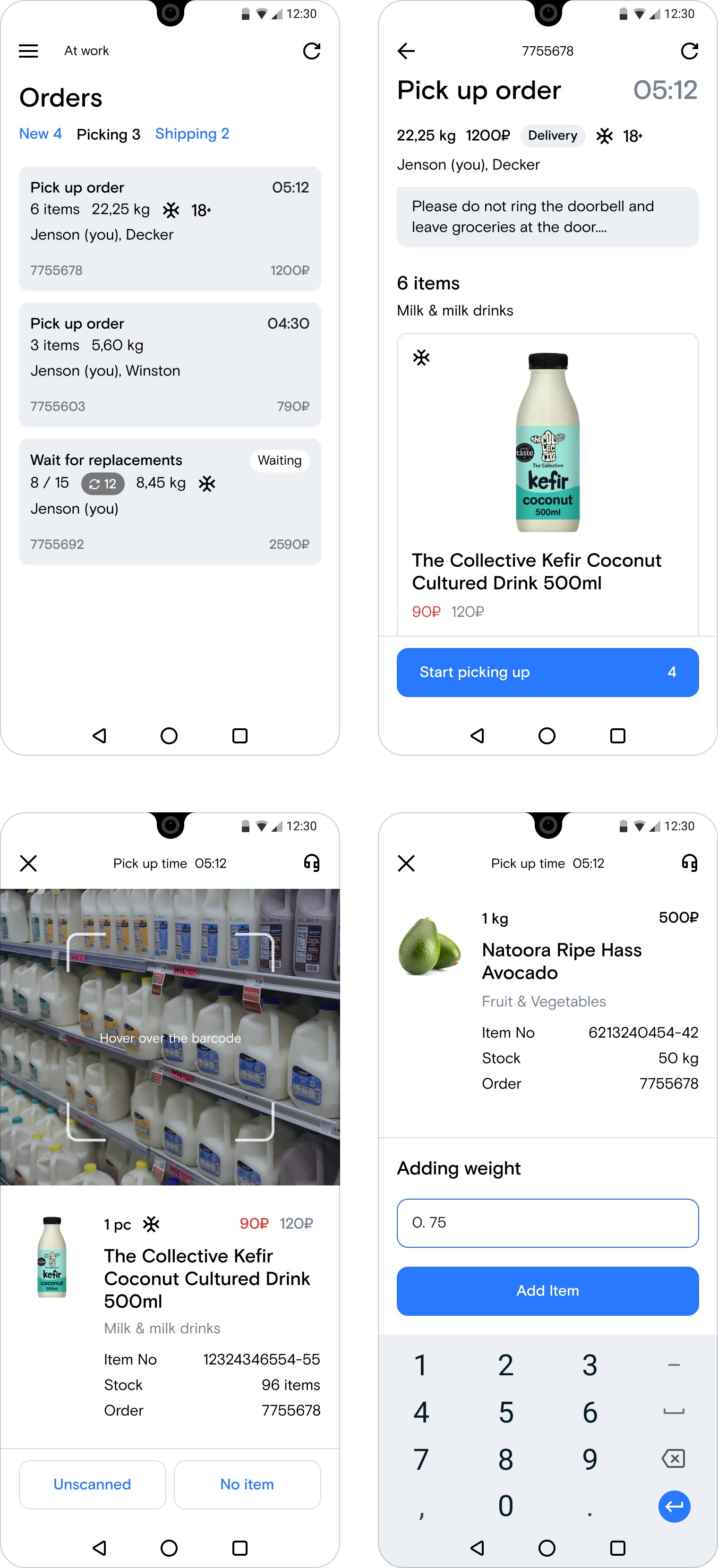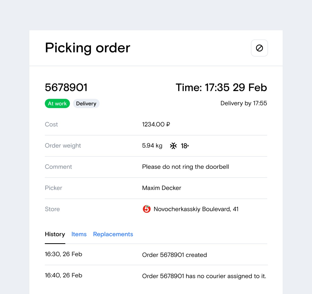 We designed the picker application based on the main user tasks. It was managing the schedule, starting the shift, picking orders, sending replacements, transferring the order to the courier and finishing the shift. Motivating pickers to maximize the quality and speed of order picking using the app was also important.